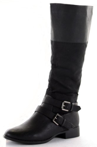 Best Seller! Ladies Flat Winter Biker Style Low Heel Fur Lined Calf High Leg Knee Boots Size with shoeFashionista Boutique bag Review